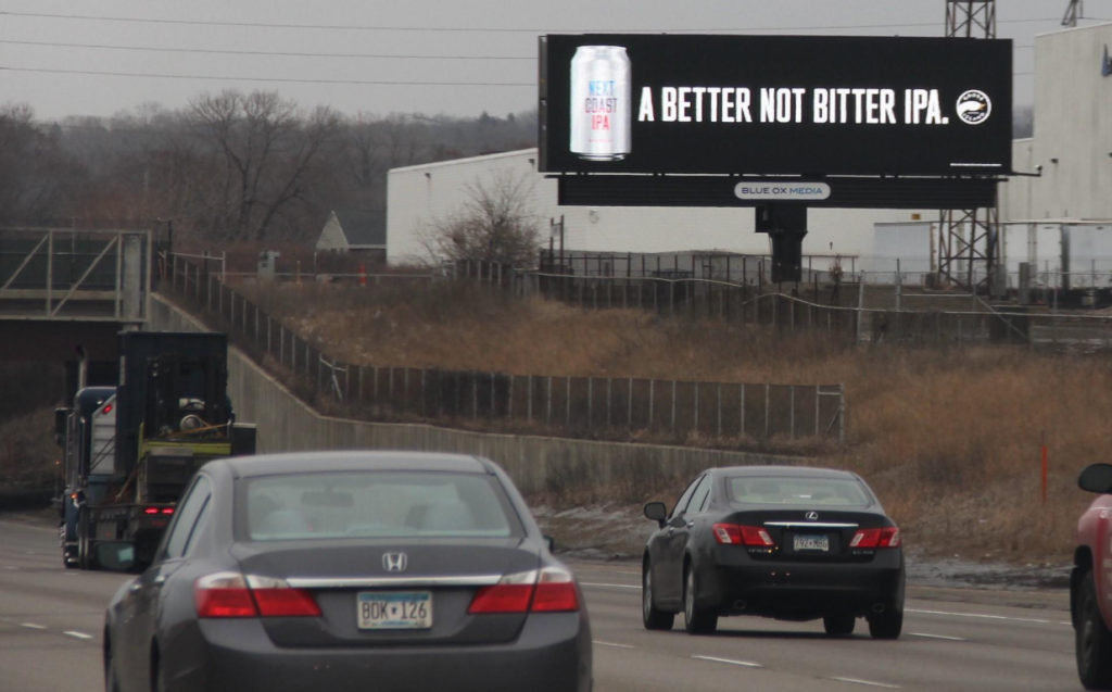 What we love about this photo is it was clearly taken by a professional in OOH. Instead of the typical positioning from the left side of the road or even the center of the right lane, its taken from the far right side. It tells me as an observer or buyer, there are no obstructions what so ever. Marquee Media