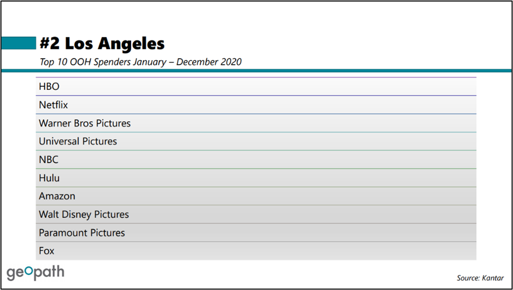 Los Angeles DMA, the top ten OOH spender list is dominated by the media industry