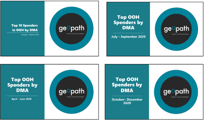 The Geopath team has now compiled reports analyzing the top OOH spenders in each of the top 100 DMAs around the country for all four quarters of 2020, and for the full year. Sourced from Kantar, these reports are available to all Geopath members via our geekOUT Library, and can be accessed by logging in with your current Geopath credentials.