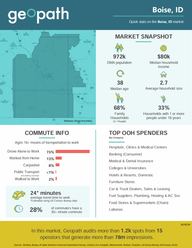 Let’s take a look at one of our newest Geopath Infographics for the Boise DMA!