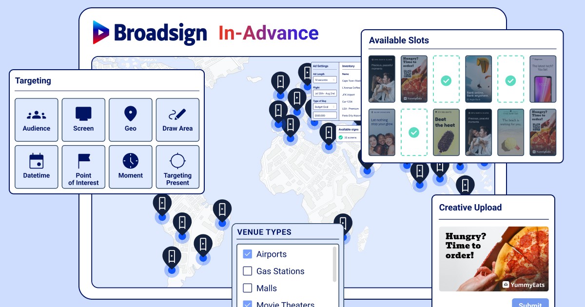 With most OOH and DOOH media purchases still taking place manually, Broadsign In-Advance is designed to enable programmatic and traditional buyers to use automated, dynamic processes for guaranteed in-advance buys. It improves planning flexibility, significantly reduces back-and-forth communications between media buyers and owners to confirm the availability of and secure inventory, and simplifies campaign adjustments. The advancement further unlocks the data-driven targeting available via programmatic buying platforms for more traditional DOOH buys, so media buying teams can make more informed decisions to maximize the performance of their reserved campaigns.