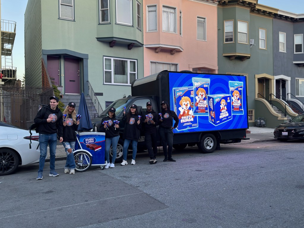 Lime Media also supported Kaiser Permanente’s mobile smoothie-sampling activation at Santa Row Plaza in partnership with agency The Robot Co. Operating from a step van, the execution demonstrated how compact mobile OOH formats can deliver targeted engagement at the neighborhood level, integrating brand messaging directly into pedestrian environments while maintaining flexibility and efficiency.