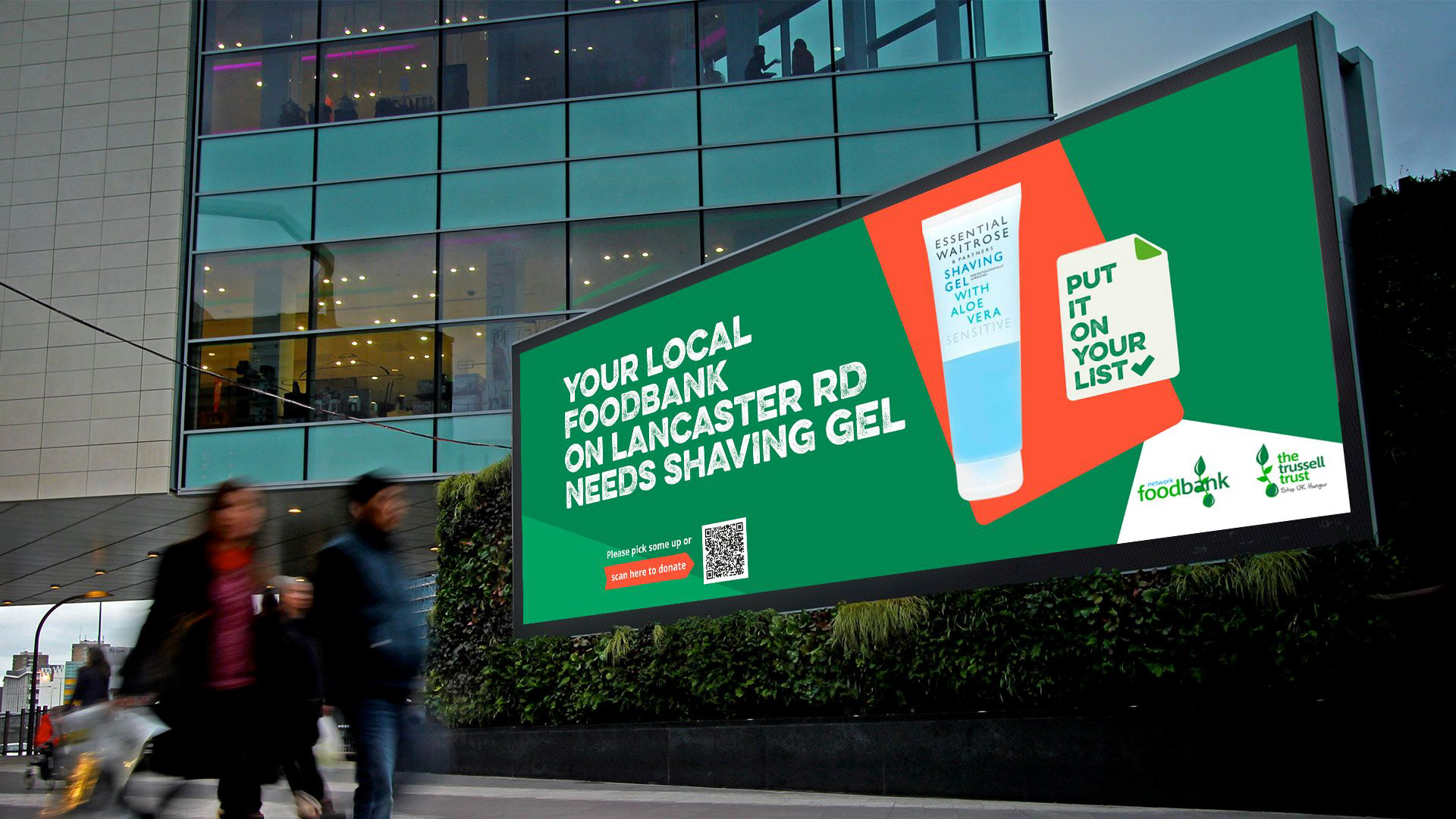Put it on your list is a contextually relevant, geo-targeted outdoor campaign that notifies shoppers exactly which products are most needed by their nearest food bank at that very moment. It then prompts them to add those items to their shopping list or scan a QR code to make a direct emergency donation.