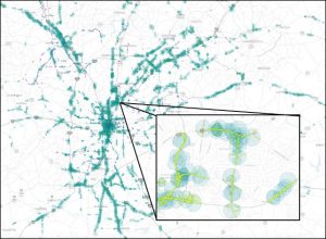 Roadways within the viewshed of audit inventory are geofenced to capture passing devices. Using these observed devices, Geopath will determine the population’s activity and to calculate changes in traffic volumes by measuring trip volume and frequency of trips by area type and by road type within a market