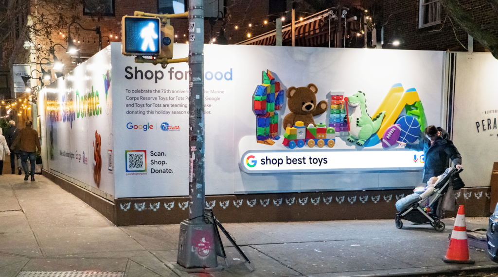 Atomic Props recently fabricated a forced perspective 3D build for this Google install, complete with a lit “shelf” that the toys sat on,