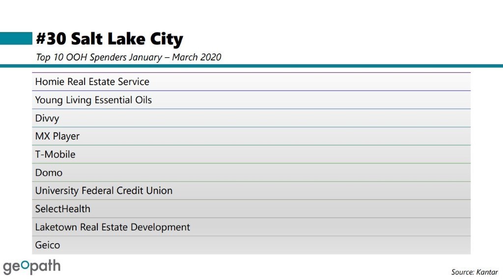 Take a look at the image below for the full list of top OOH spenders in the Salt Lake City DMA, or access the report for other DMAs, by clicking here.