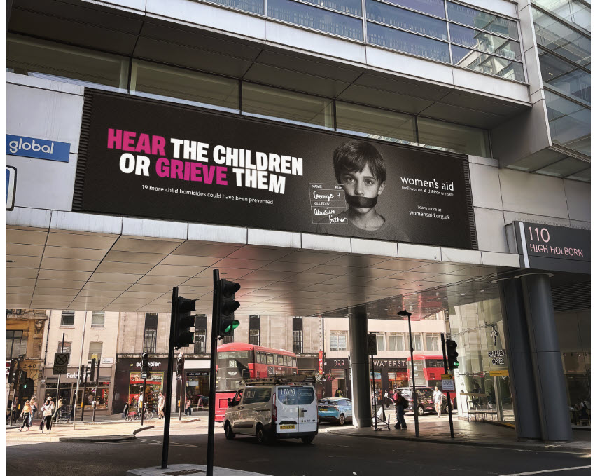 The release of the report on the 23rd June is supported by an impactful out-of-home (OOH) campaign positioned near the Central Family Court in central London. The campaign, titled “Hear the Children, or Grieve Them,” uses striking imagery and emotionally resonant copy to represent just some of the children whose voices were ignored. The campaign will run for one day on the Holborn Eye’s large-format, high-definition digital screen and across the wider Holborn area, all within half a mile of the Central Family Court.