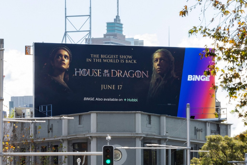 To celebrate the launch of House of the Dragon Season 2 on 17 June, BINGE has partnered with Mindshare and POLY, the creative and innovation hub of oOh!media, in an Australian advertising first that will see the iconic Out-of-Home (OOH) billboard at Taylor Square in Sydney ‘burned’ by a dragon using Computer Generated Imagery (CGI) technology.