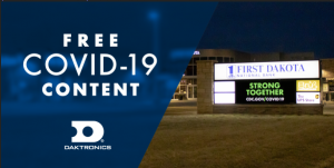 Daktronics is offering free content at www.daktronics.com/covid19content so you can update the public as quickly as possible. We will continue to add additional messages over the coming days.