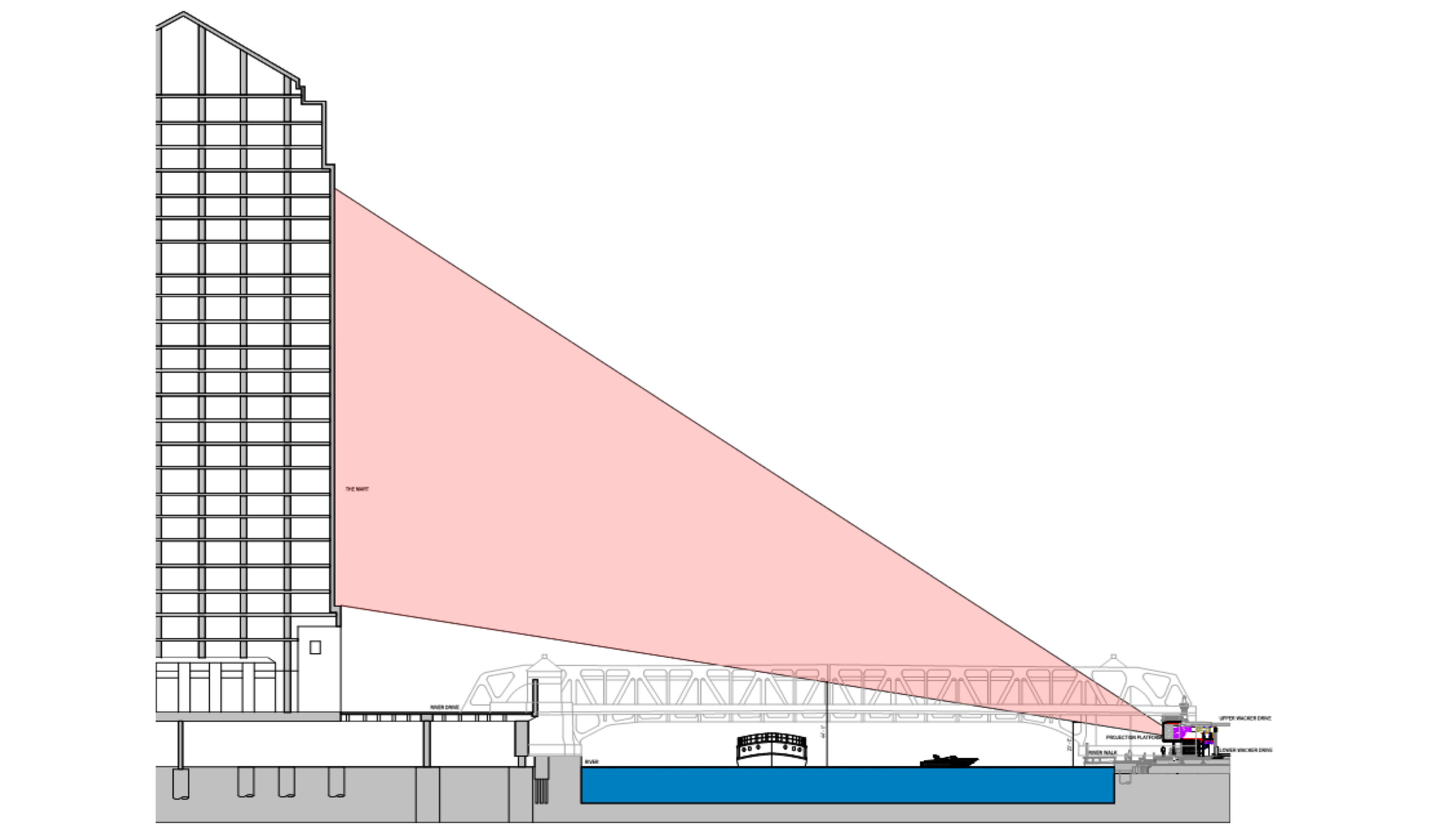 artwork which will be projected across 2.5 acres of theMART’s exterior river-façade, creating the longest and largest running digital Out of Home art projection in the world. This becomes a near permanent fixture in Chicago for the next 30 years!