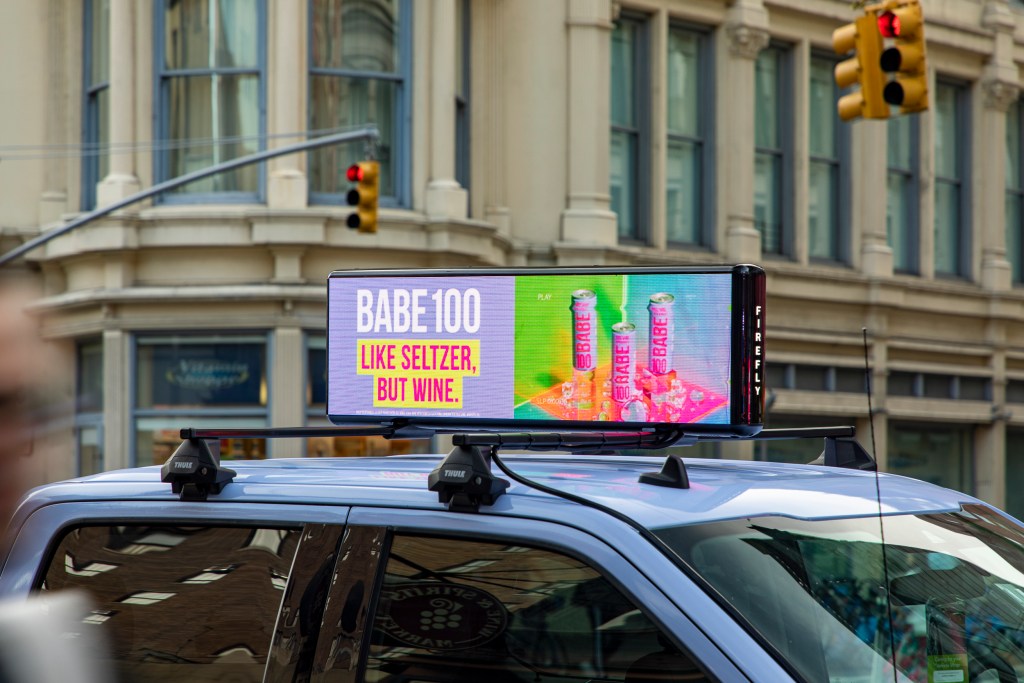 New York City, NY – Firefly, the largest taxi-top media platform in North America, partnered with Babe Rosé this weekend in New York City with a multiple-stop OOH activation that featured not only digital car-top screens but also a wrapped truck and product sampling.