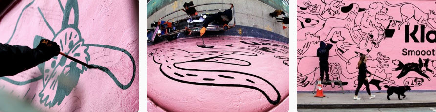 Of course, every dog walking by stopped to nuzzle, sniff, and bite the toys — leading every owner to spend many minutes in front of the mural. They absorbed the Klarna message, posed with the pink mural for pictures they posted on social media, and used the mural’s QR code to download the app. This fulfilled Klarna’s objective of engaging with and marketing to dog owners.