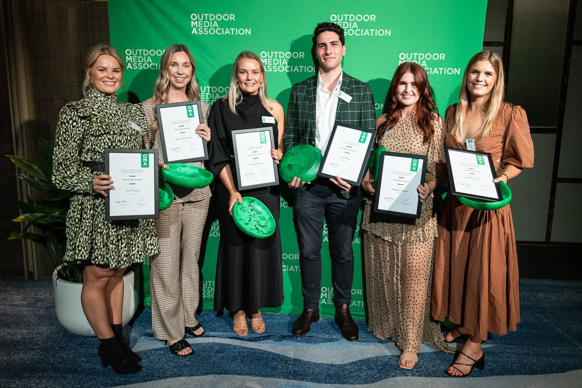 Rising Star Award NSW | Joint Winners: Alec Mowat – VMO and Meaghan Spencer – oOh!media QLD | Octavia Bellekens – VMO SA | Natasha Jarrett – oOh!media VIC | Tess Fellows – oOh!media WA | Anna Wyatt-Spratt – oOh!media |