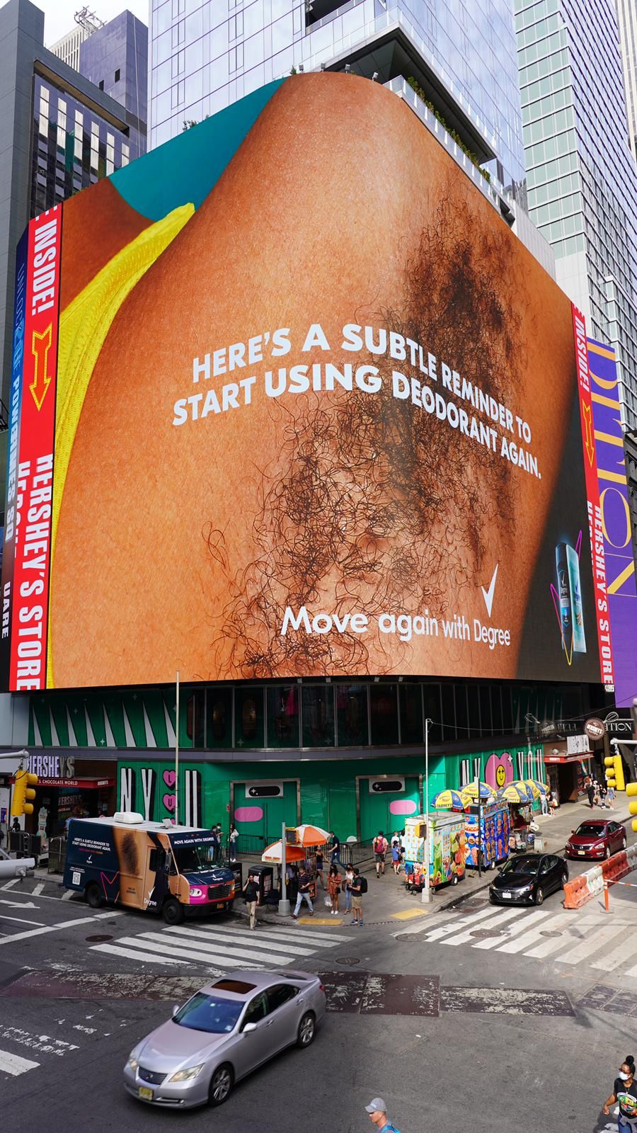 68% – that’s how many Americans admitted to ditching their deodorant over the past year, a new Degree Deodorant study finds. But as the world opens back up, people are getting back to doing the things they love; over half of Americans are planning to exercise more, and as a result, a majority plan to use deodorant more frequently. In celebration of this return to movement, Degree Deodorant is putting ‘pits’ front and center with its latest #MoveAgainWithDegree campaign, featuring a Times Square takeover, disruptive contextual OOH buy and retargeting, sampling and much more!