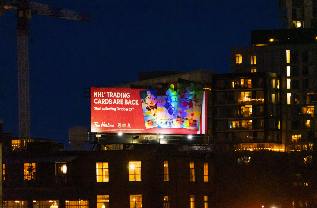 Holographic billboard with extensions you say? No problem. Tim Hortons NHL Trading Cards Outfront Media Canada