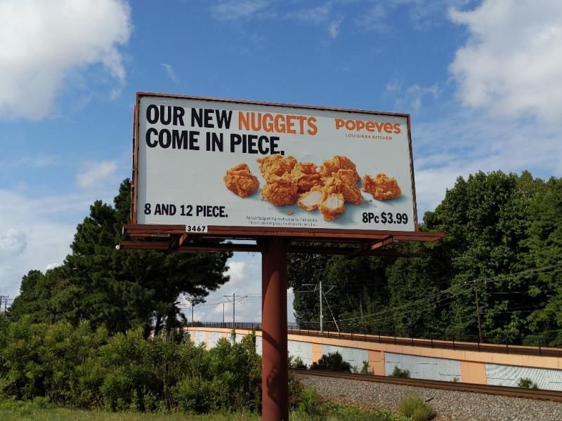 Popeye’s has decided to call for Piece…..8 and 12 piece. #adamsoutdoor #popeyes #outdooradvertising #billboards #dadjokes
