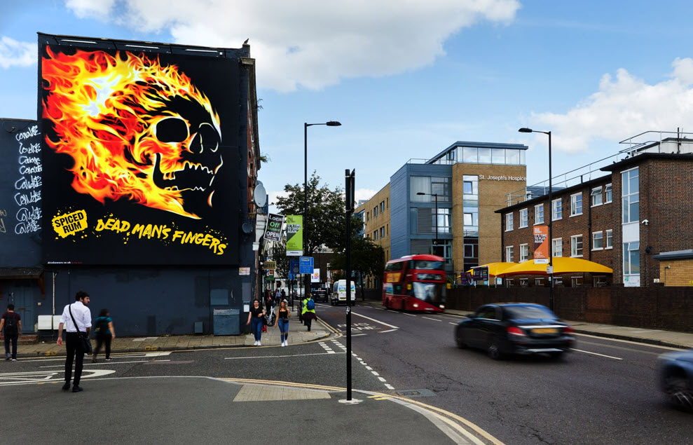 Hot creative for Halewood Artisanal Spirits reaching trendy urban areas and staycation destinations. Super cool work The Village Agency #OOH #deadmansfingersspiced #KineticActive