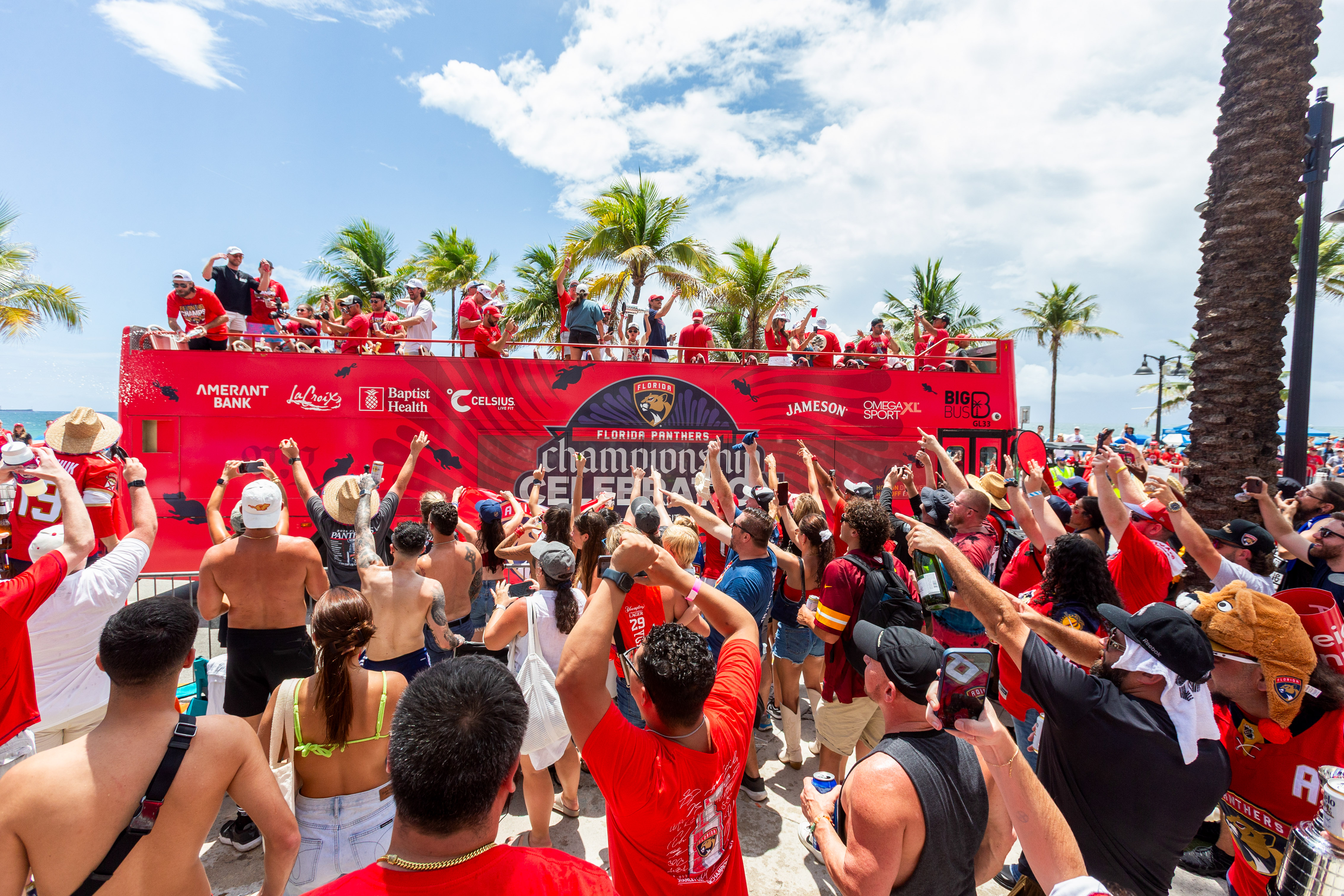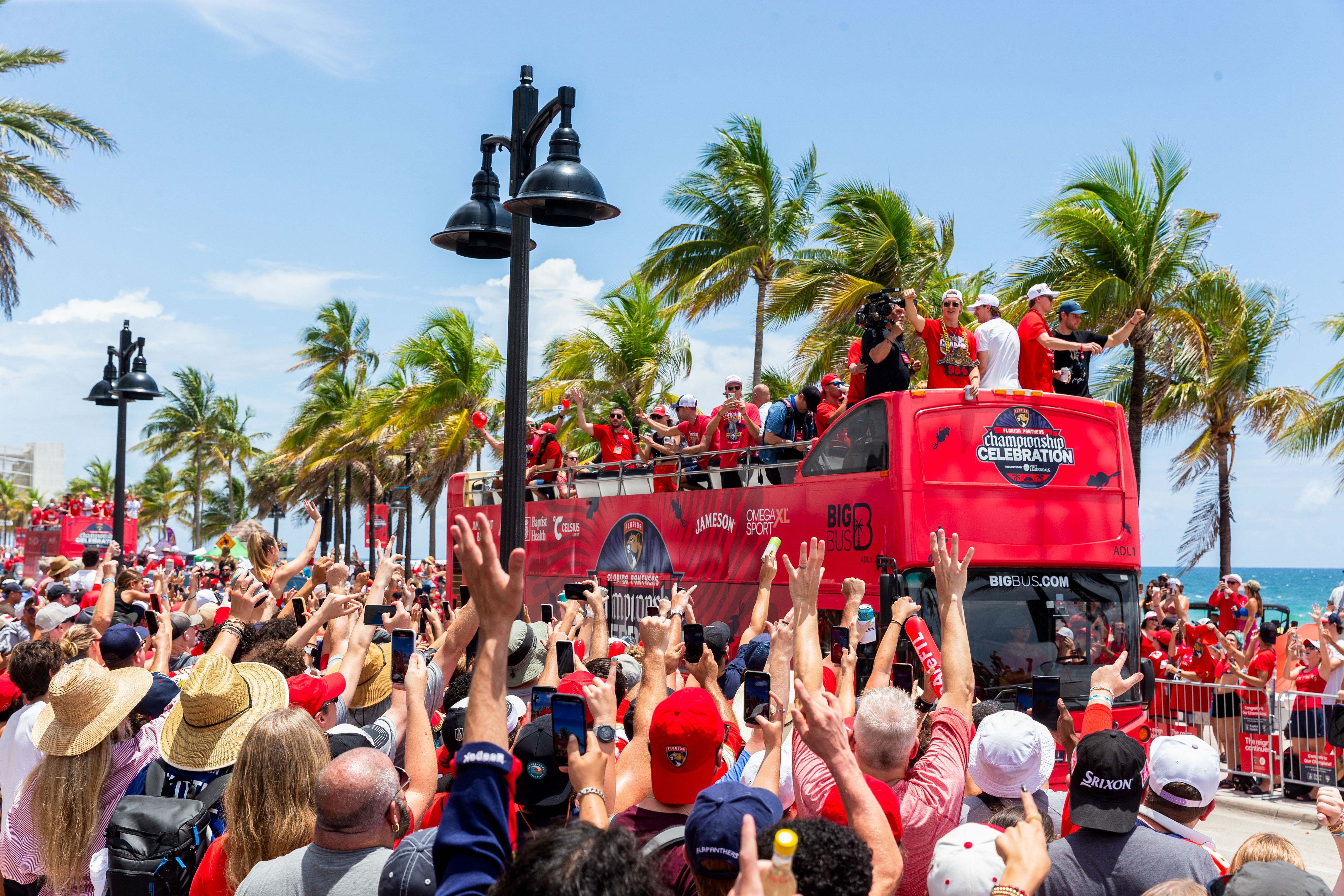 3. Stanley Cup champs the Florida Panthers celebrated in the streets riding high on Double Decker buses. | Vector Media