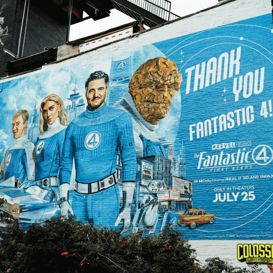 9. Marvel Studios is promoting the release of The Fantastic Four: First Steps movie, hitting theaters July 25th, with a beautiful, hand-painted mural by Colossal Media in Brooklyn. | Agency: OMG23