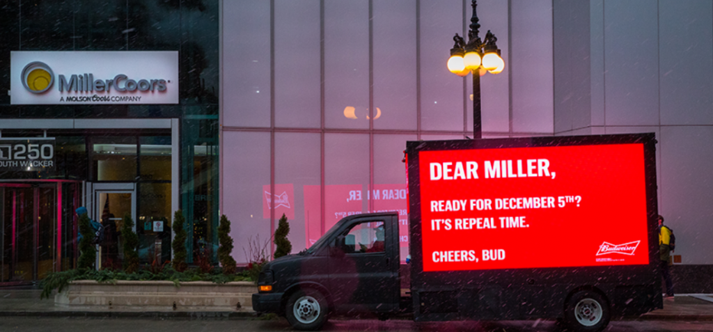 Budweiser Placed Mobile Trucks Outside Competitors’ Offices to Celebrate