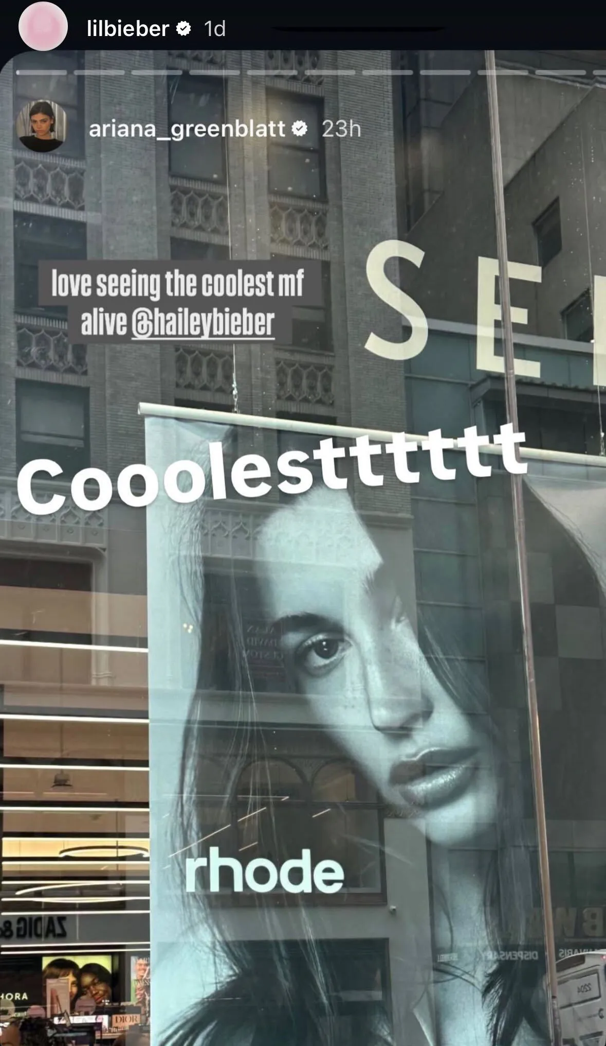 Hailey Bieber’s Rhode billboard in New York City didn’t just light up Sephora’s storefront—it went viral when Justin Bieber shared it on Instagram Stories. His one-word shoutout turned a single OOH placement into a moment of organic social amplification, proving how one billboard can achieve exponential reach when boosted by the right voice online.