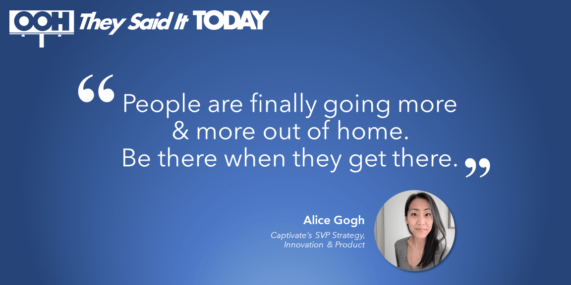 Three-quarters (74%) of workers are already commuting and that number is expected to grow to nearly 8 out of 10 in early 2022, according to research from OAAA and The Harris Poll. As screen fatigue continues to surge, advertisers looking to stand out need to break out of traditional digital channels to meet people where they are, according to Alice Gogh, Captivate‘s SVP of Strategy, Innovation & Product.