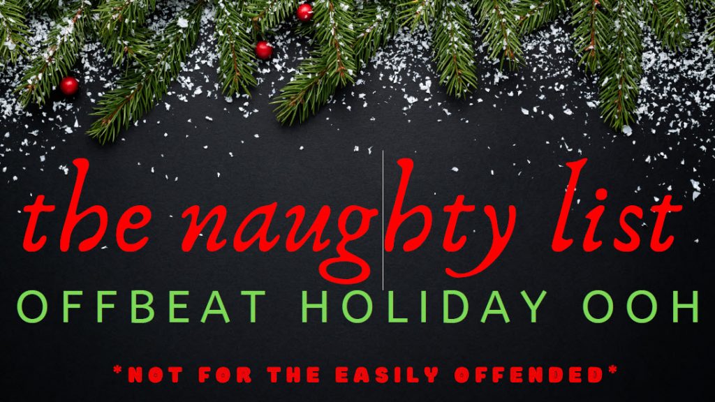 Some rather out of the ordinary creative has been collected and grouped below by an individual who requested anonymity.  For your curious sense of interest and humor, we are sharing this prurient OOH creative.  Frankly, we are amazed some of this material actually made it to the street and would not be surprised if a few may be Photoshop. Does anyone filter what goes on the street any more? We were assured all photos represent REAL OOH. While we never knowingly mislead or share ‘false material’, our ‘author’ assures us, it is all legitimate designs which were once on display. Some content may be controversial, if not outright offensive. It appears the creative department lost its sense of political correctness. Please proceed with caution.  For the holidays…