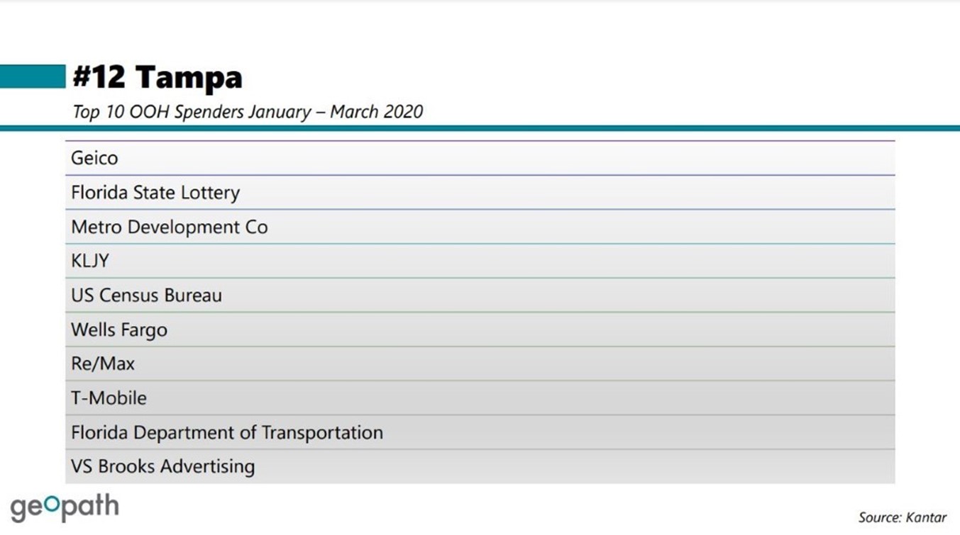 Tampa – St. Petersburg Top OOH Spenders
