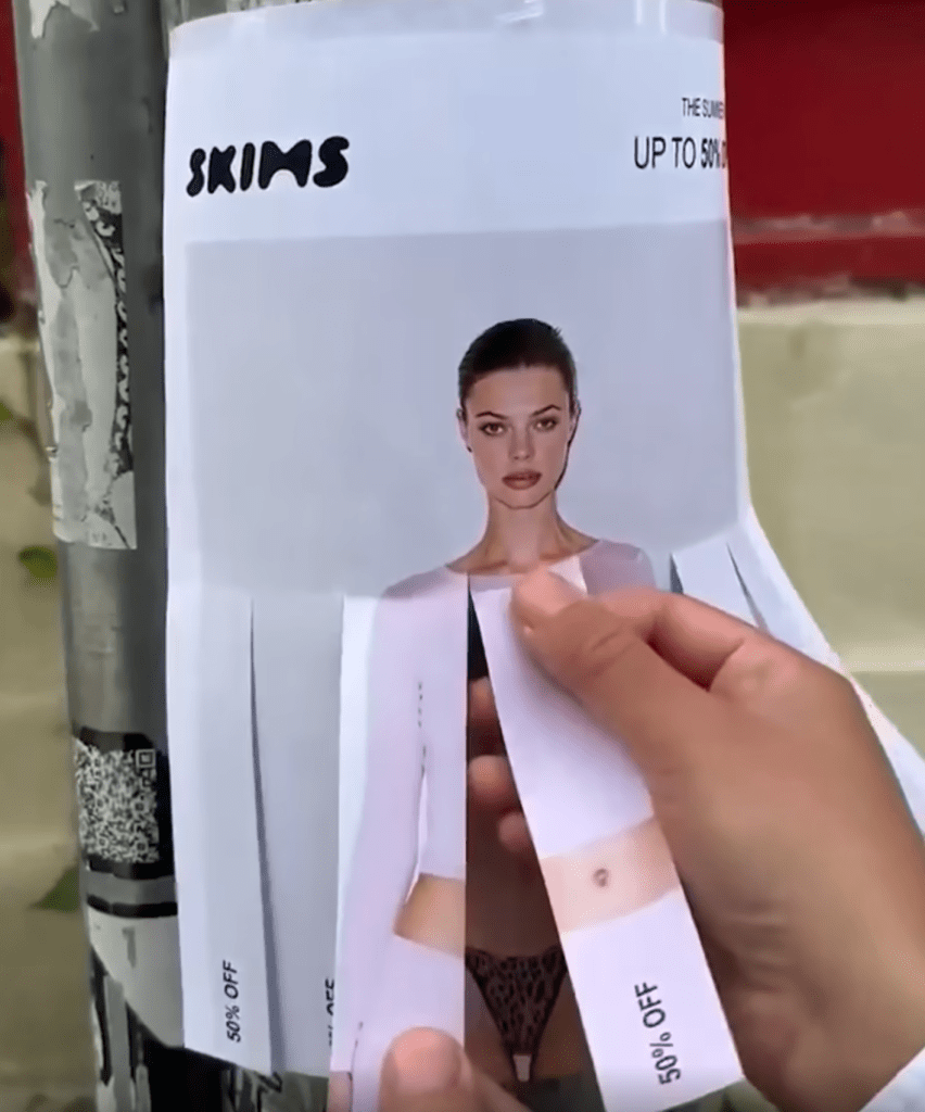 Simple stunt, smart psychology—SKIMS didn’t just offer 50% off, they made you work for the perk. Watch the video for the full OOH advertising effect.