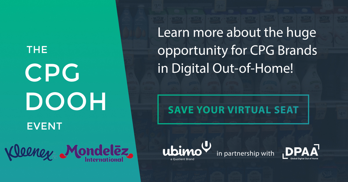 “We are pleased to be holding this event with our member Ubimo, A Quotient Brand. Their location intelligence has been a powerful component in telling the story of consumers returning via Some Good DOOH News distributed by DPAA. This CPG event is a must attend for anyone involved in the sales and marketing of consumer-packaged goods, especially in today’s environment,” said Barry Frey, President & CEO, DPAA.