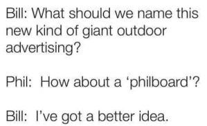 The name, Bill’s Boards, became a generally accepted reference by the local business community who would direct their secretary to, ‘place an ad on one of Bill’s Boards’. As years went on, William Boarders’ sign business evolved to the shortened version what we today call, billboards.