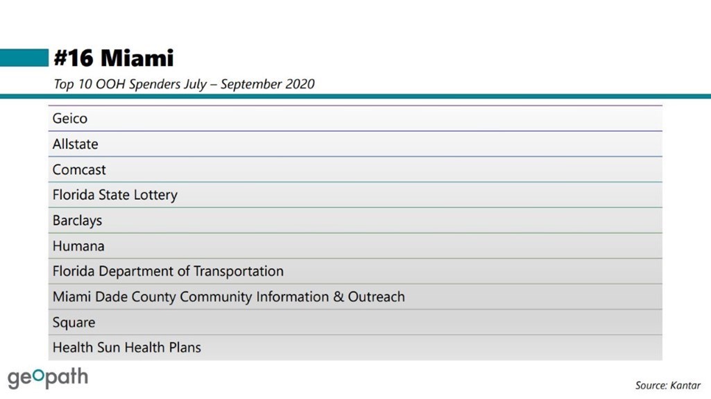 […] Top 10 OOH Spenders —Miami – Ft. Lauderdale […]