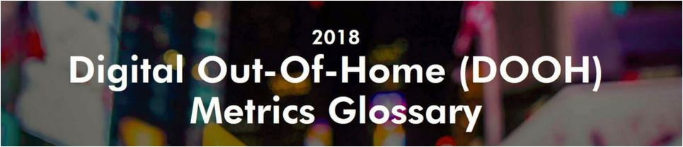 The Interactive Advertising Bureau (IAB), formed a Digital Out-of-Home (DOOH) committee to create efficiencies for agencies and brands to evaluate, plan, and buy DOOH with traditional online media. The committee created a DOOH Metric Glossary ⇐Click to open it here. In addition to the ‘DOOH Metrics Glossary‘, the IAB created a Buyers Guide for DOOH. (Click)⇒ IAB’s Digital OOH Digital Buyer’s Guide.